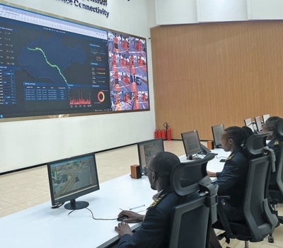 在肯尼亞內(nèi)羅畢快速路監(jiān)控中心,工作人員正在監(jiān)測車輛運行狀況。鄭文嬌攝