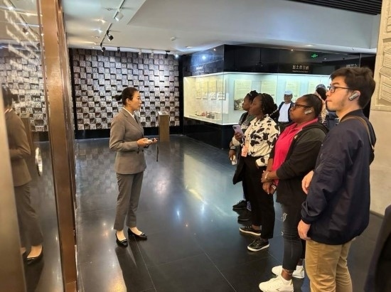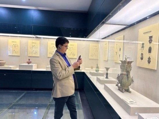 10月23日,2023“一帶一路”媒體合作論壇聯(lián)合采訪團(tuán)團(tuán)員在中國酒文化城認(rèn)真觀看展覽。本報(bào)記者 劉書文攝