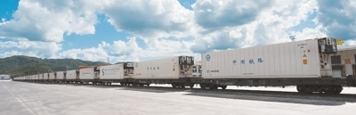 冷藏貨運班列駛入中國磨憨鐵路口岸。