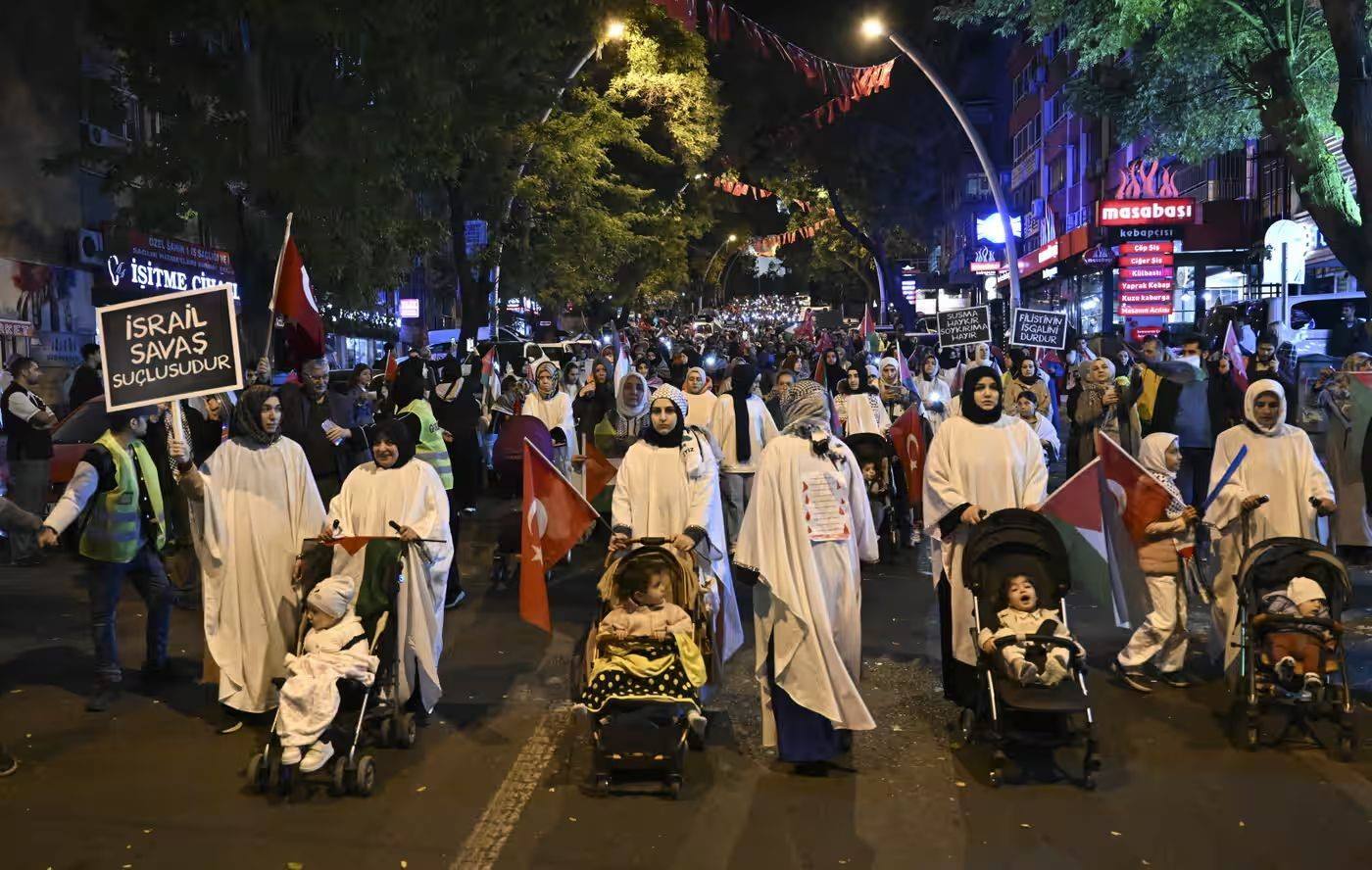 當(dāng)?shù)貢r間11日,民眾在土耳其安卡拉參加支持巴勒斯坦游行 圖源:《衛(wèi)報》