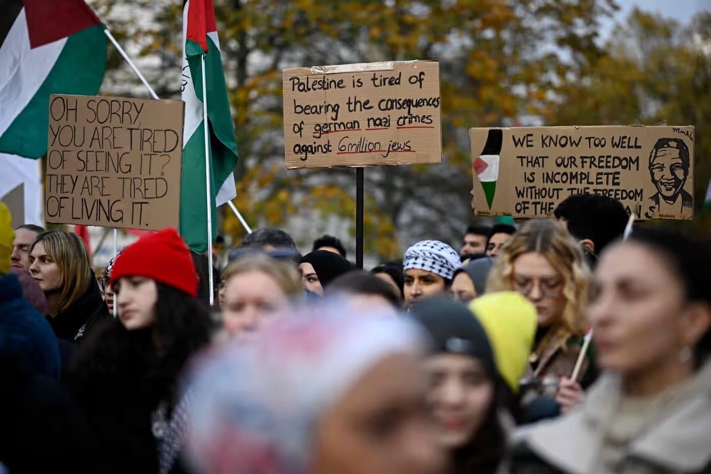 當(dāng)?shù)貢r間11日,民眾在德國柏林參加支持巴勒斯坦游行 圖源:《衛(wèi)報》