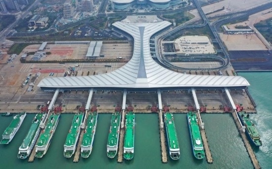 這是??谛潞L裝碼頭客運(yùn)綜合樞紐站項(xiàng)目(11月29日攝,無(wú)人機(jī)照片)。新華社記者郭程攝