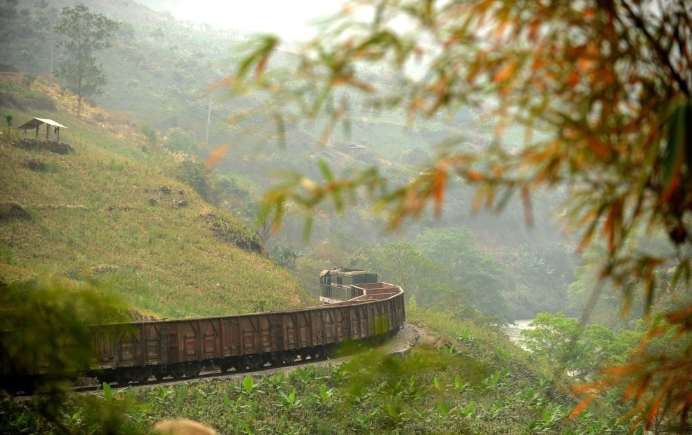 這是行駛在滇越鐵路云南省屏邊縣境內(nèi)的貨運(yùn)列車(2012年3月9日攝)。