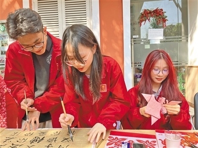 12月8日,在河內(nèi)大學(xué)孔子學(xué)院舉行的文化體驗活動中,越南大學(xué)生體驗中國書法和剪紙。本報記者 張遠(yuǎn)南攝