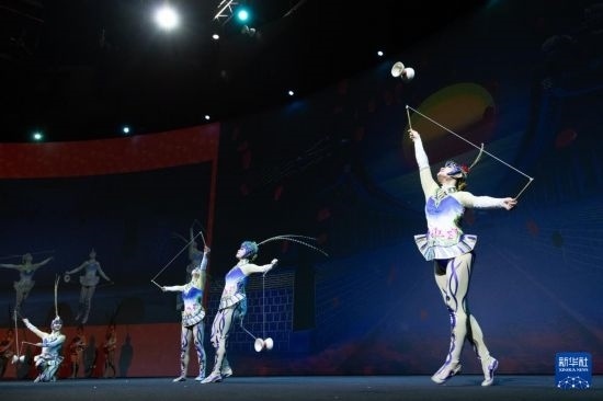 2月24日,演員在荷蘭海牙舉行的“四海同春”慰?jī)S訪(fǎng)演活動(dòng)上表演雜技。新華社記者 孟鼎博 攝
