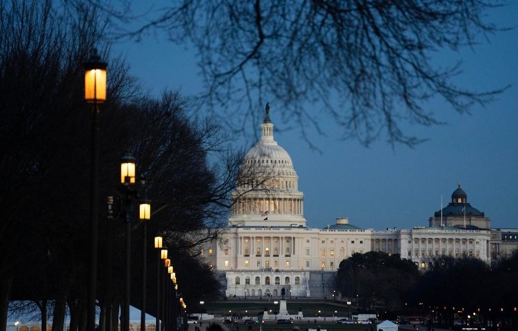 這是1月5日在美國首都華盛頓拍攝的國會大廈。新華社記者劉杰攝
