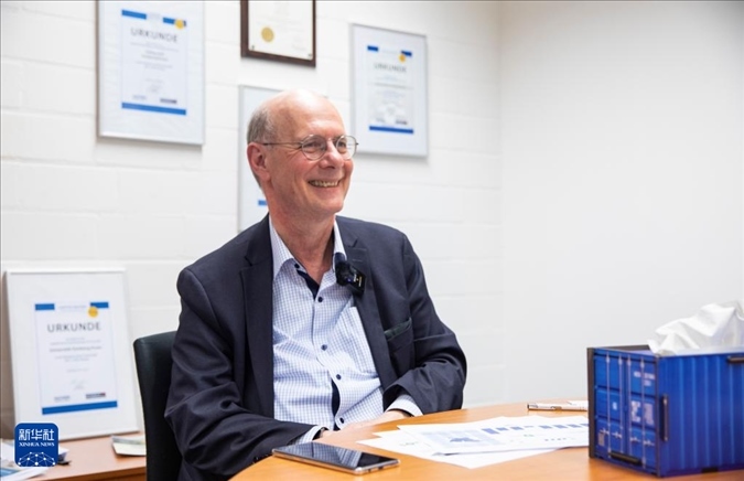 ?3月27日,德國杜伊斯堡-埃森大學交通與物流系主任貝恩德·諾合在杜伊斯堡接受新華社專訪。新華社記者 張帆 攝