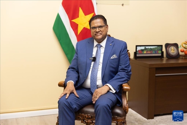 “蘇里南與中國的關(guān)系久經(jīng)考驗(yàn),友誼源遠(yuǎn)流長,期待蘇中各領(lǐng)域合作更上一層樓?!碧K里南總統(tǒng)昌德利卡佩爾薩德·單多吉日前在首都帕拉馬里博總統(tǒng)辦公室接受新華社記者專訪時(shí)如是說。
