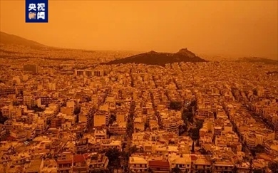 當(dāng)?shù)貢r(shí)間23日,希臘雅典遭遇來(lái)自非洲撒哈拉沙漠的沙塵侵襲。當(dāng)天在希臘議會(huì)大樓附近拍攝的畫面顯示,雅典城市上空變成橙黃色,樓房和街道籠罩在沙塵之中。