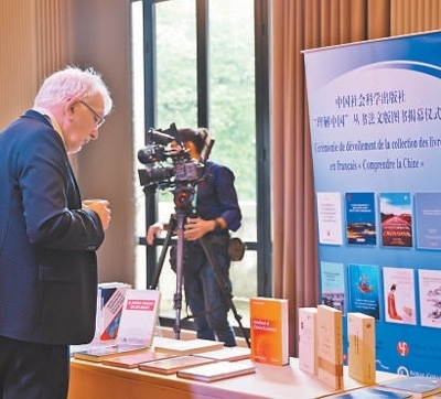 5月3日,中國社會科學出版社“理解中國”叢書法文版圖書揭幕儀式在法國巴黎舉行。圖為現場嘉賓在展位前駐足了解相關圖書。本報記者 楊 一攝