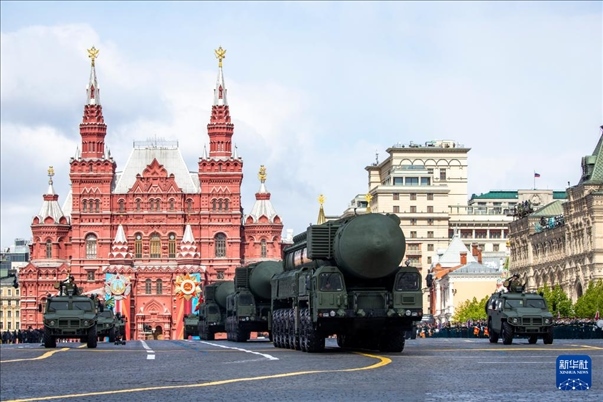 5月9日,在俄羅斯首都莫斯科,“亞爾斯”導(dǎo)彈系統(tǒng)編隊駛過紅場。新華社記者 曹陽 攝