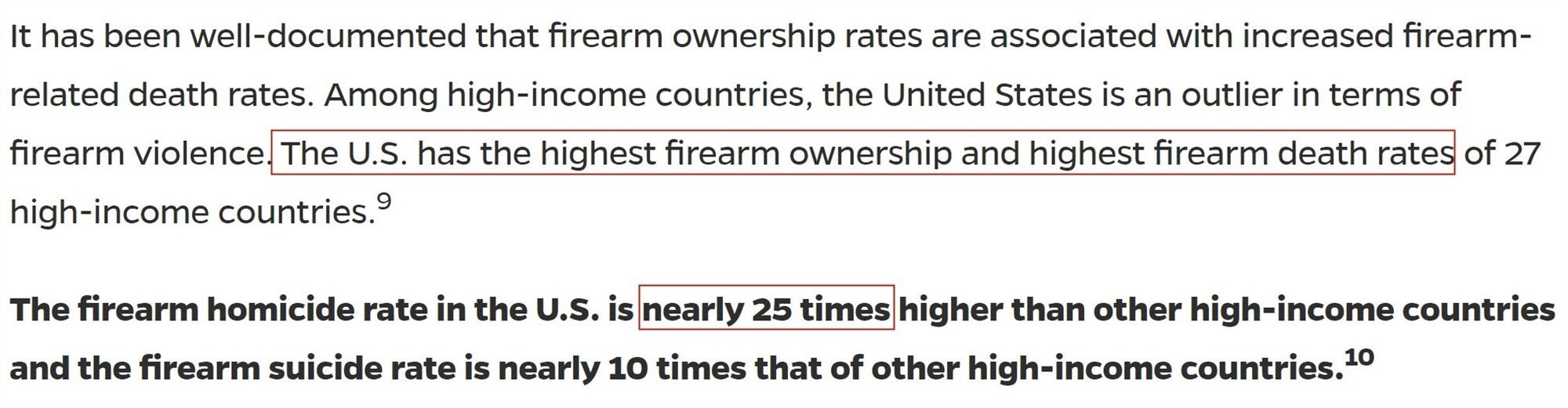 △約翰斯·霍普金斯大學(xué)槍支暴力解決方案中心官網(wǎng):數(shù)據(jù)表明,槍支擁有率與槍支相關(guān)的死亡率上升密切相關(guān)。在高收入國(guó)家中,美國(guó)的槍支擁有率和槍支引發(fā)的死亡率最高,是其他高收入國(guó)家的近25倍。
