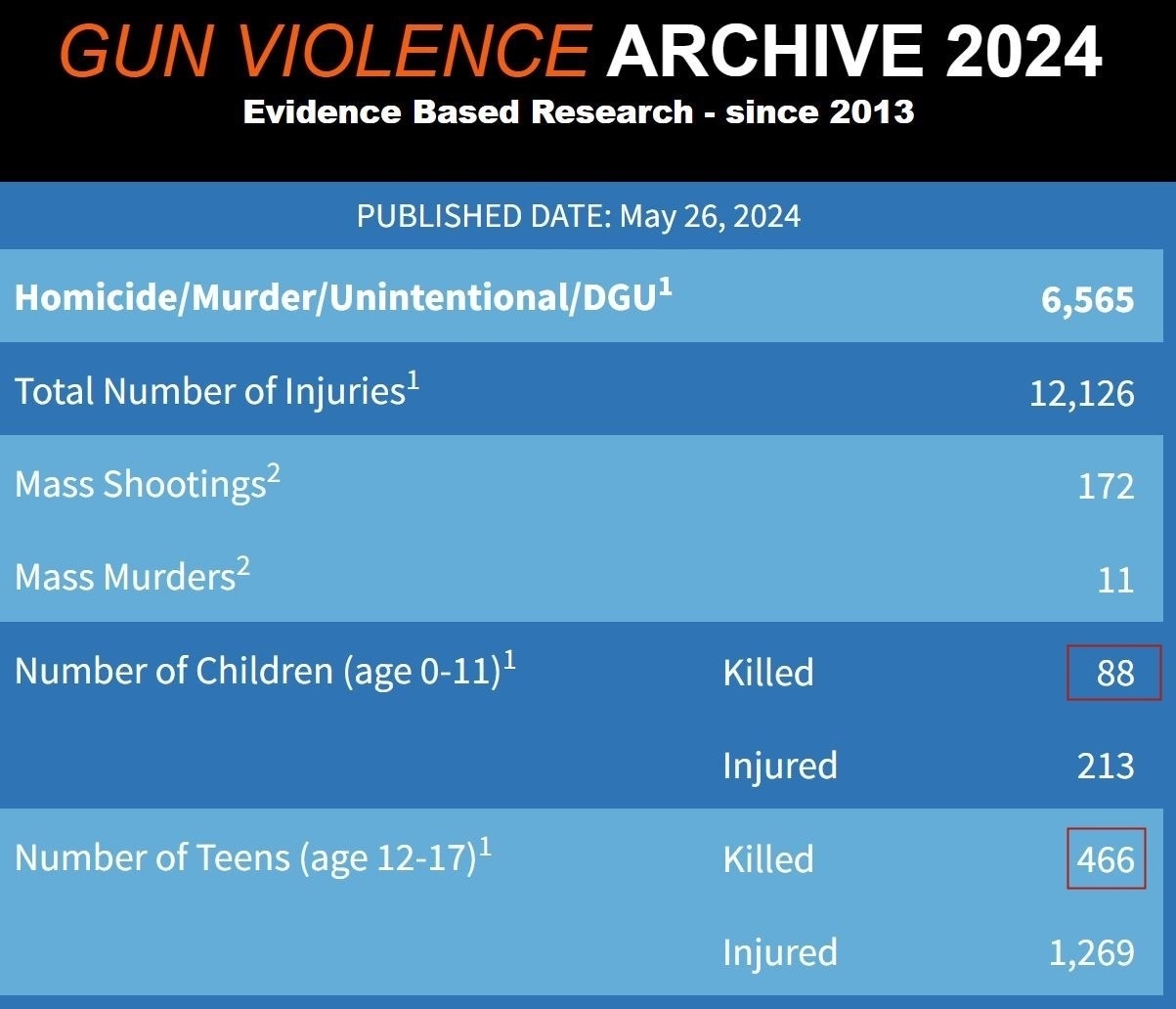 而根據(jù)美國(guó)“槍支暴力檔案”網(wǎng)站的數(shù)據(jù),截至5月26日,今年以來(lái)全美已有554名兒童和青少年因槍擊身亡。