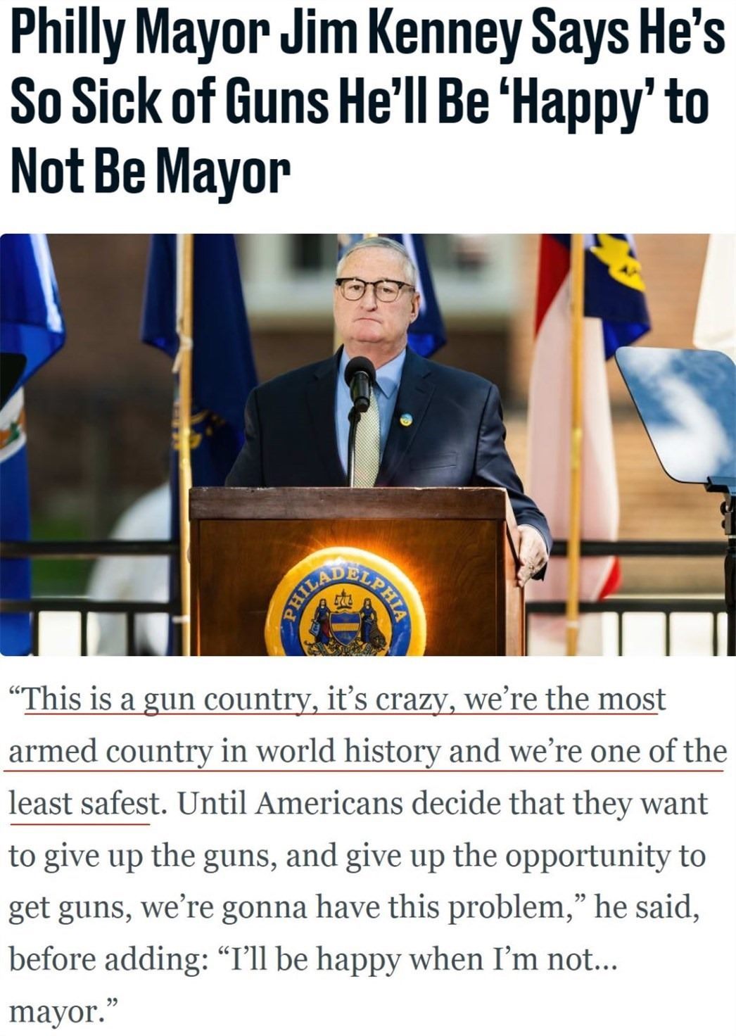 對(duì)于如此夸張的數(shù)據(jù),美國(guó)費(fèi)城前任市長(zhǎng)吉姆·肯尼曾無(wú)奈地感嘆,美國(guó)是槍支王國(guó)。