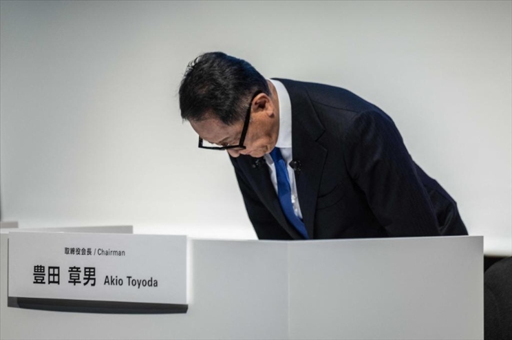 ?6月3日,豐田汽車(chē)公司會(huì)長(zhǎng)(董事長(zhǎng))豐田章男在東京召開(kāi)的記者會(huì)上鞠躬道歉。新華社/法新