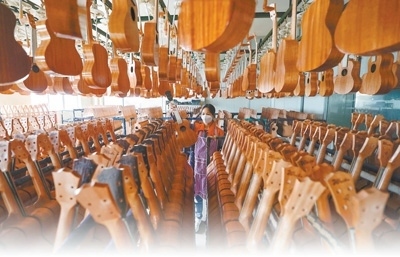 一個貴州東北邊緣縣城生產(chǎn)的吉他,如何打開國際市場?“國際性樂器展會是我們吉他企業(yè)‘走出去’的一大平臺?!贝轱w說。早期,為了鼓勵吉他企業(yè)參加展會,正安對企業(yè)的展位費、人員出行費按比例進行補貼。嘗到甜頭后,不少企業(yè)每年都會主動參展,“展會規(guī)模大,參展廠商多,我們能接觸到更廣闊的市場?!表f林飛說。