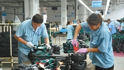 60多公里外的駐馬店市平輿縣產(chǎn)業(yè)集聚區(qū)里,戶外休閑用品加工企業(yè)內(nèi)一派繁忙景象。河南泰普森休閑用品有限公司車間正緊鑼密鼓地生產(chǎn)折疊桌椅、帳篷、戶外小拉車等產(chǎn)品?!斑@些是歐洲的訂單?!惫究偨?jīng)理王小奇指著眼前正在包裝的產(chǎn)品說,“今年市場需求旺盛,訂單已經(jīng)排到年底了。我們加足馬力生產(chǎn),一條流水線的日產(chǎn)量已超過1000套。”