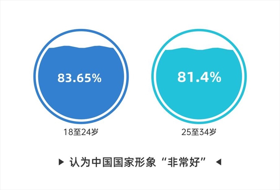 在國際影響力方面,92.8%的18至24歲受訪青年和91.1%的25至34歲受訪青年積極評價中國國際影響力,高于87.2%的整體認同度。