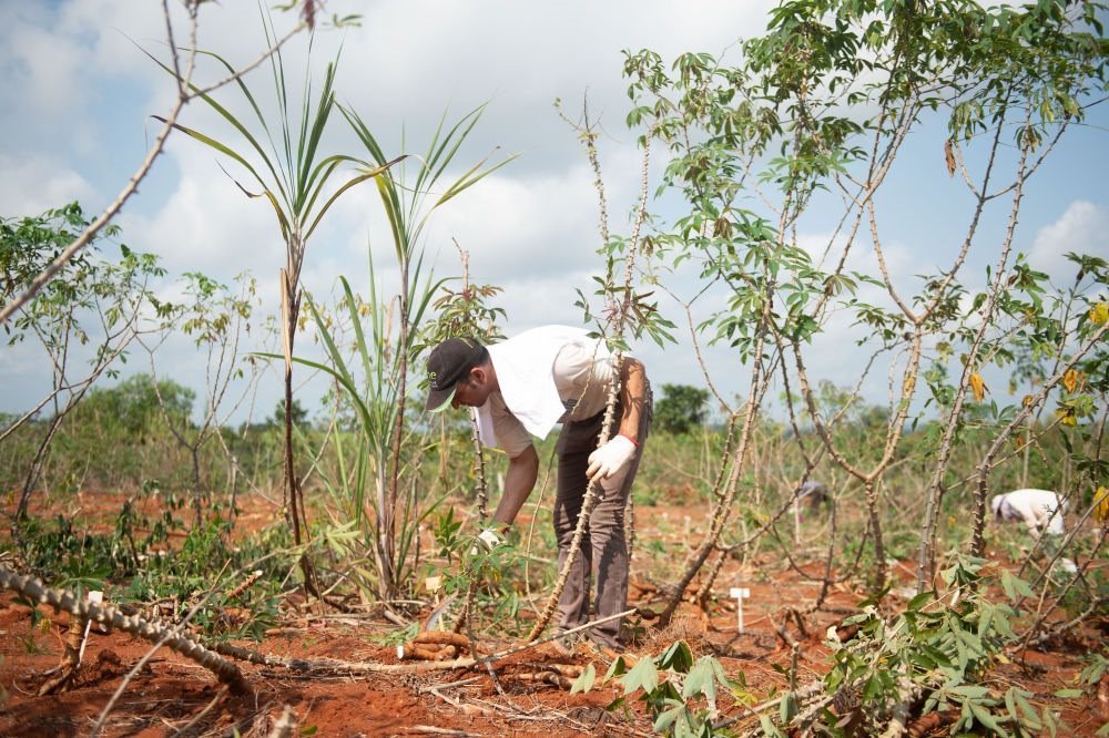 2020年3月24日,在位于海南省的中國熱帶農(nóng)業(yè)科學(xué)院的一處基地,來自埃及的副教授哈馬達(dá)·穆罕默德·哈?!ぐ⒉范爬瓍⒓又袊鵁峥圃簾釒锛夹g(shù)研究所木薯育種團(tuán)隊(duì)開展的木薯選育新技術(shù)培訓(xùn)。