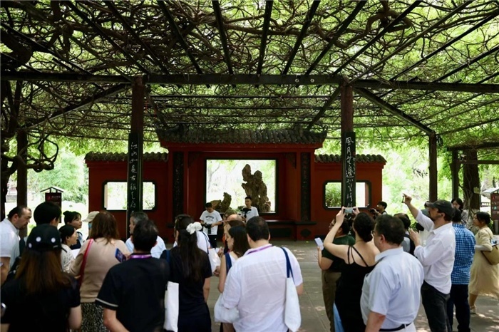 桂湖公園內最著名的古建筑之一是楊升庵祠堂。楊慎,號升庵,是從新都走出的明代四川唯一狀元,他剛正立朝、嚴謹治學,被稱為明代三大才子之首,“滾滾長江東逝水,浪花淘盡英雄”便出自他的筆下。公園工作人員向考察團介紹,桂湖原是楊升庵的書苑,在這里,他沿湖植歸,摘種荷花,培植風景。作為“四川首批十大歷史名人”之一,楊升庵“為國為民,一片丹心”的家國情懷和“好學窮理,精思深索”的治學精神已成為新都人文精神的象征。