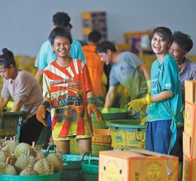 榴蓮是中國(guó)第一大水果進(jìn)口品類。據(jù)統(tǒng)計(jì),2023年中國(guó)進(jìn)口142.6萬(wàn)噸鮮榴蓮,其中92.9萬(wàn)噸來(lái)自泰國(guó)。中國(guó)市場(chǎng)的強(qiáng)勁需求,帶動(dòng)了泰國(guó)水果產(chǎn)業(yè)發(fā)展。泰國(guó)商業(yè)部數(shù)據(jù)顯示,2024年尖竹汶府的榴蓮產(chǎn)量預(yù)計(jì)突破56萬(wàn)噸,同比增長(zhǎng)超4.3%。同時(shí),山竹、龍宮果等熱帶水果的產(chǎn)量也迎來(lái)了快速增長(zhǎng)?!拔彝扑]了不少親朋好友來(lái)水果加工廠上班,收入有保障,旺季的提成更是豐厚!”猜維開心地說。