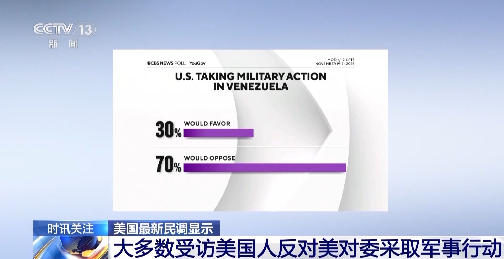 美國23日的一份最新民意調(diào)查結(jié)果顯示,70%的受訪美國人反對美國對委內(nèi)瑞拉采取軍事行動。關(guān)于美國在該地區(qū)針對所謂“販毒船”的攻擊行動,75%的受訪美國人認為美國應(yīng)出示證據(jù),證明其攻擊的船只確實載有毒品。