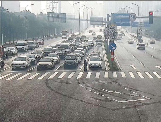 海曙交警向記者介紹說,指揮中心發(fā)現(xiàn)路口的擁堵情況時(shí),注意到是一位腿腳不便的老人過馬路,為此延長(zhǎng)了信號(hào)燈時(shí)間,直到老人安全地走完斑馬線。