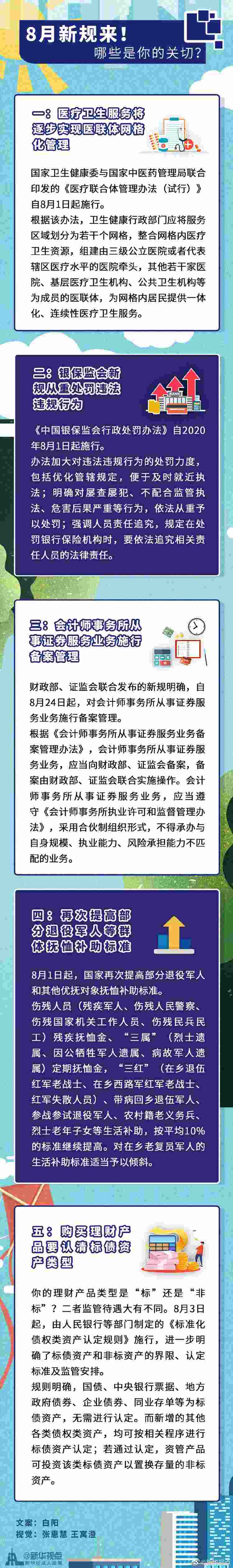 居民看病將逐步實(shí)現(xiàn)醫(yī)聯(lián)體網(wǎng)格化服務(wù)、銀保監(jiān)會(huì)新規(guī)進(jìn)一步提升金融違法違規(guī)成本、部分退役軍人和其他優(yōu)撫對(duì)象撫恤補(bǔ)助標(biāo)準(zhǔn)再次提高……這個(gè)8月,又有一批新規(guī)開始施行,影響你我的生活。