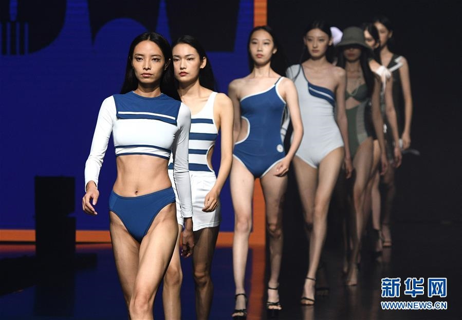 9月1日,模特在“泳享青春不負(fù)未來”第五屆互聯(lián)網(wǎng)時(shí)尚設(shè)計(jì)大賽決賽上展示服裝。當(dāng)晚,以“新銳力量——原力覺醒”為主題的東方時(shí)尚季·第20屆中國(青島)國際時(shí)裝周落下帷幕。新華社記者李紫恒攝