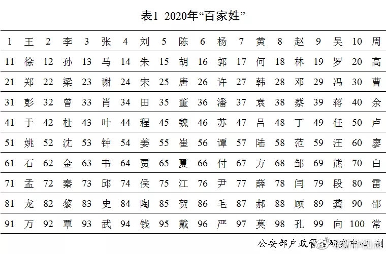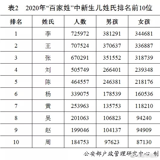 剛剛,公安部戶政管理研究中心二〇二〇年全國(guó)姓名報(bào)告發(fā)布。按戶籍人口數(shù)量排名,2020年的“百家姓”與2019年相比變化不大?!巴酢薄袄睢薄皬垺薄皠ⅰ薄瓣悺币琅f名列前五,五大姓氏人口總數(shù)占全國(guó)戶籍總?cè)丝诘?0.8%。截止到2020年12月31日,2020年出生并已經(jīng)到公安機(jī)關(guān)進(jìn)行戶籍登記的新生兒共1003.5萬(wàn),其中男孩529.0萬(wàn),占52.7%,女孩474.5萬(wàn),占47.3%。2020年“百家姓”中新生兒登記姓氏最多的是“李”,共72.6萬(wàn)人。2020年出生并已經(jīng)進(jìn)行戶籍登記的女性新生兒中,使用頻率最高的10個(gè)名字依次為:“一諾”“依諾”“欣怡”“梓涵”“語(yǔ)桐”“欣妍”“可欣”“語(yǔ)汐”“雨桐”“夢(mèng)瑤”。與2019年相比,“一諾”“依諾”“欣怡”依舊位列三甲,“語(yǔ)桐”“可欣”“語(yǔ)汐”“夢(mèng)瑤”進(jìn)入前十。(記者 熊豐、任沁沁)