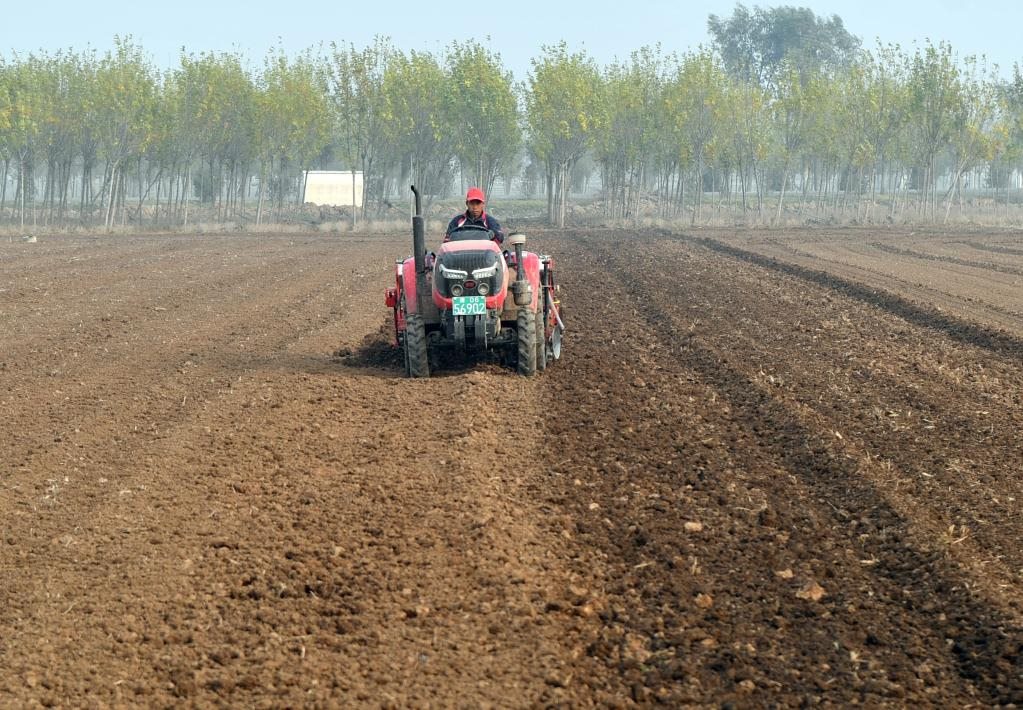 11月3日晚上,河南??h衛(wèi)溪街道西長(zhǎng)村的田地里,農(nóng)民在耕地。(新華社記者李嘉南 攝)