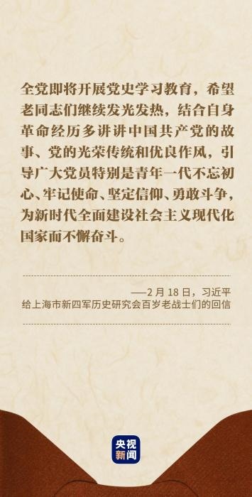 習(xí)近平總書記在回信中說(shuō):“你們青年時(shí)代就投身革命,為黨和人民事業(yè)英勇奮斗,期頤之年仍心系黨史宣傳教育,深厚的愛黨之情令人感佩?!?/p>