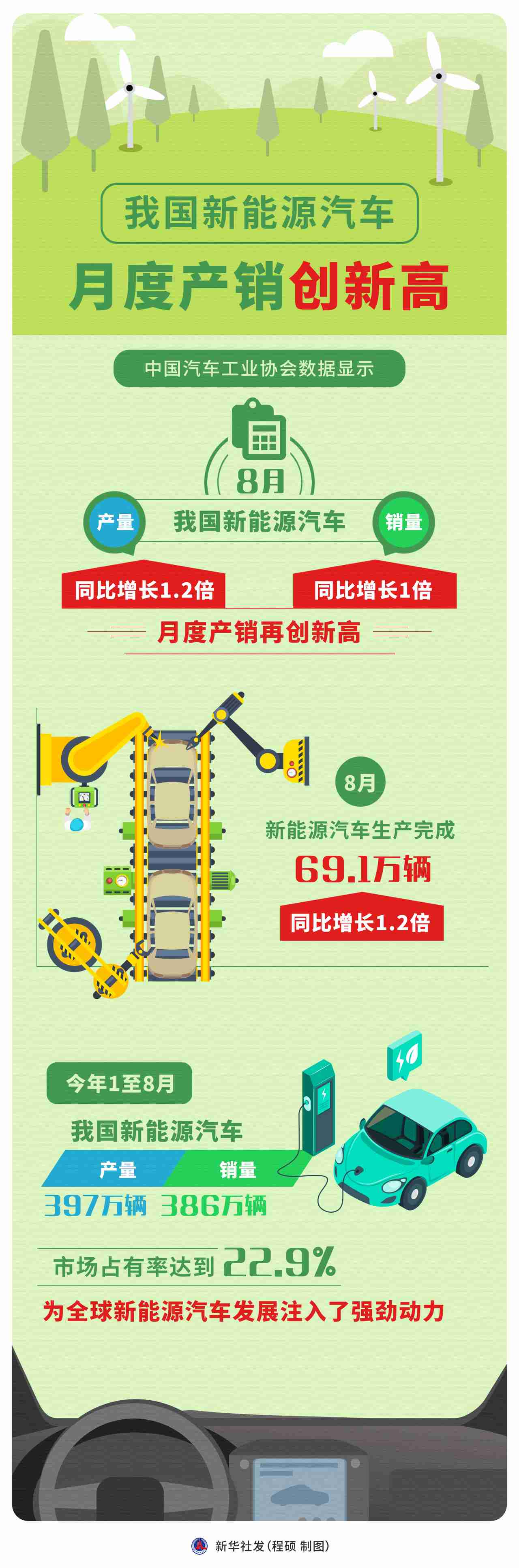 新華社北京9月15日電 題:月度產(chǎn)銷(xiāo)創(chuàng)新高,政策助力新能源汽車(chē)發(fā)展