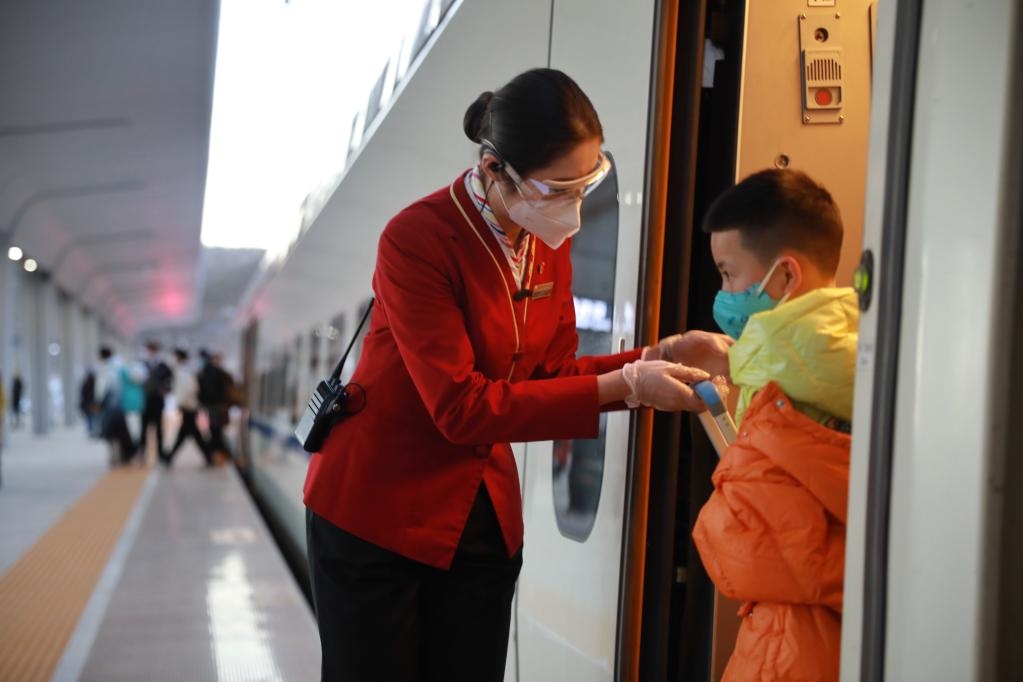 “本趟列車由清河站始發(fā),經(jīng)停八達嶺長城站、下花園北站以及太子城站,最終到達崇禮站,全程1小時28分鐘。”春節(jié)前的最后一個周末,北京清河站人來人往,攜帶著各式各樣雪具的游客們正興沖沖地搭乘列車。作為北京連接崇禮的“冰雪線”,京張高鐵各趟列車每天準點從北京北站或清河站出發(fā),載著游客們奔赴冰雪旅程。