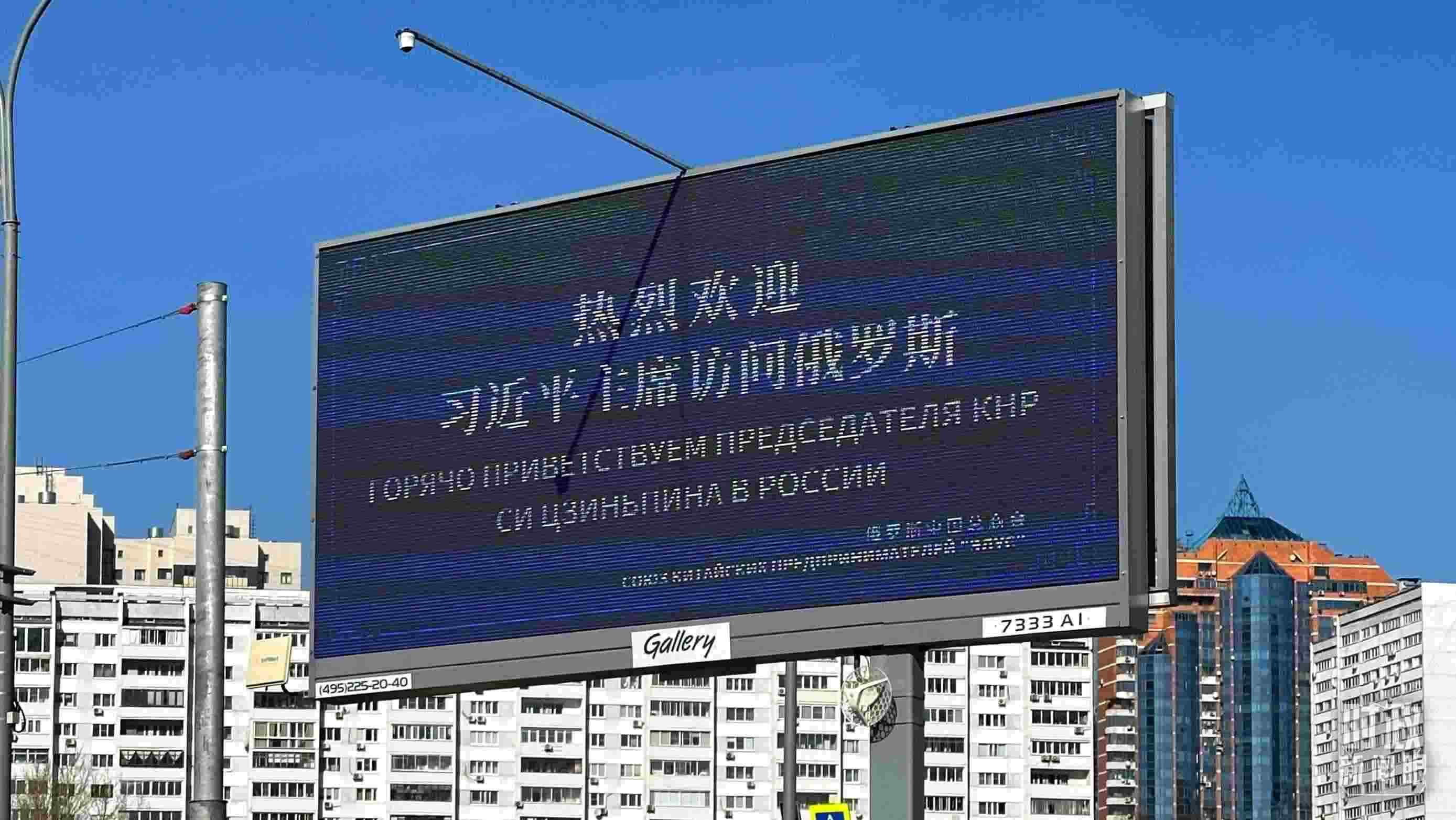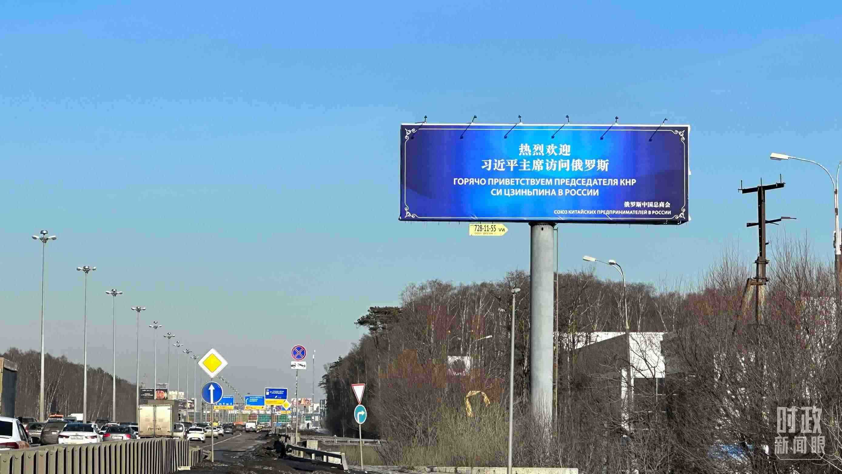 △莫斯科街頭,“熱烈歡迎習(xí)近平主席訪問俄羅斯”的歡迎標(biāo)語。(總臺央視記者覃思拍攝)