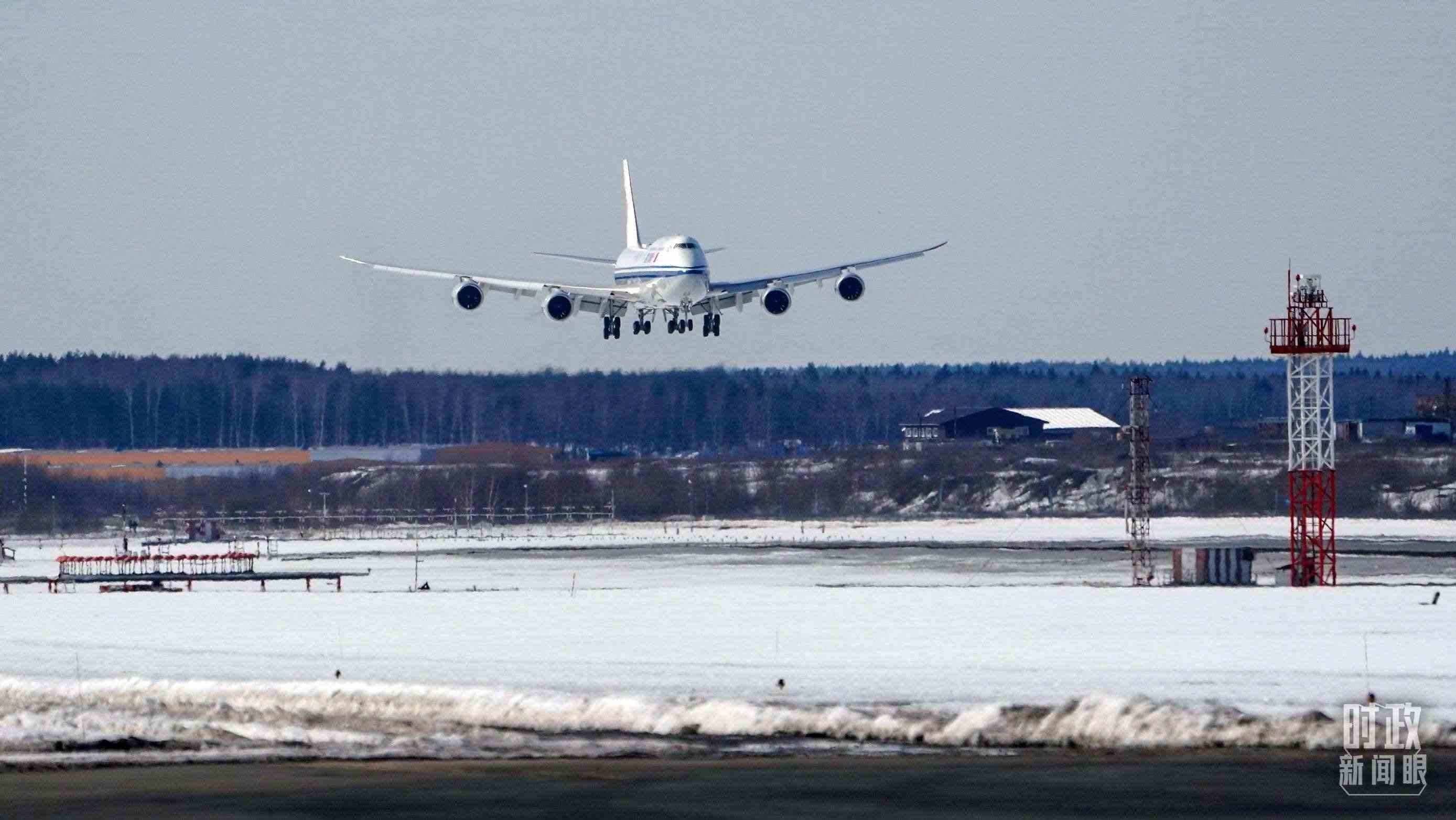 △習(xí)近平主席乘坐的專機即將落地莫斯科。(總臺國廣記者李晉拍攝)
