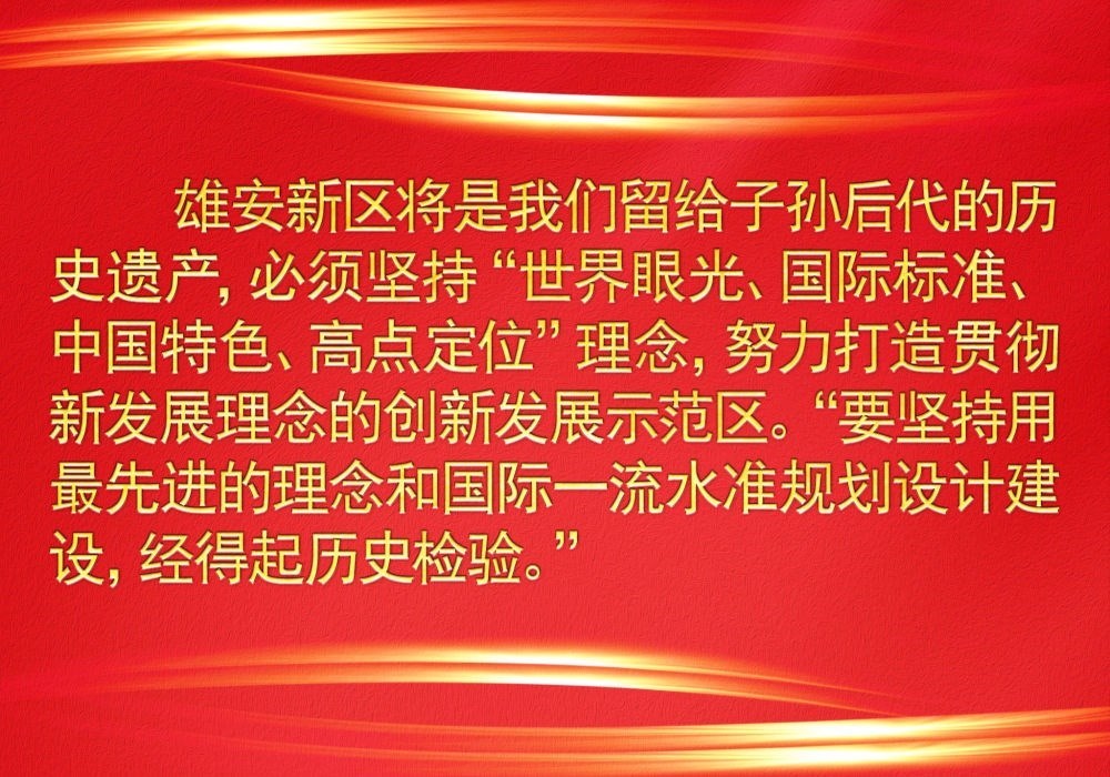 在以習(xí)近平同志為核心的黨中央領(lǐng)導(dǎo)下,堅(jiān)持大歷史觀,保持歷史耐心,一茬接著一茬干,一年接著一年干,確保一張藍(lán)圖干到底,努力創(chuàng)造“雄安質(zhì)量”,雄安新區(qū)正著力打造高質(zhì)量發(fā)展的全國樣板。