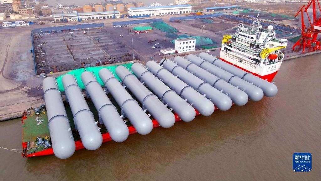 當(dāng)日,由位于山東省榮成市的一家重工企業(yè)制造的超大型石油液化氣儲(chǔ)罐啟運(yùn)安哥拉。這些大型“巨無霸”石油液化氣儲(chǔ)罐每臺(tái)直徑8米、長80米、重約480噸。據(jù)了解,2022年以來,山東省榮成市從石島港向“一帶一路”國家出口大型裝備160多臺(tái)(套)。新華社發(fā)(楊志禮攝)