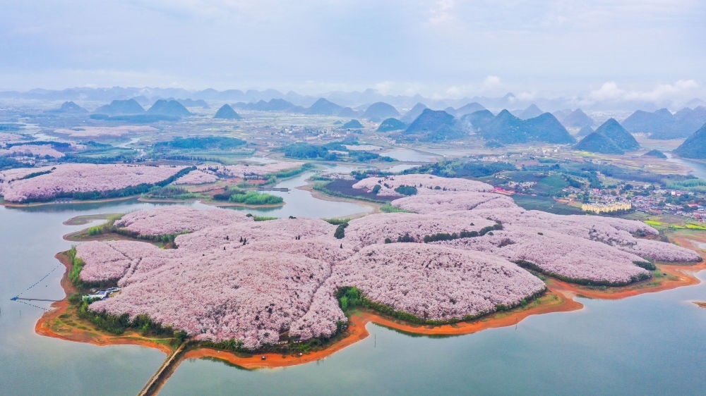 貴州省貴安新區(qū)櫻花園(無人機照片,2022年3月17日攝)。新華社記者 歐東衢 攝