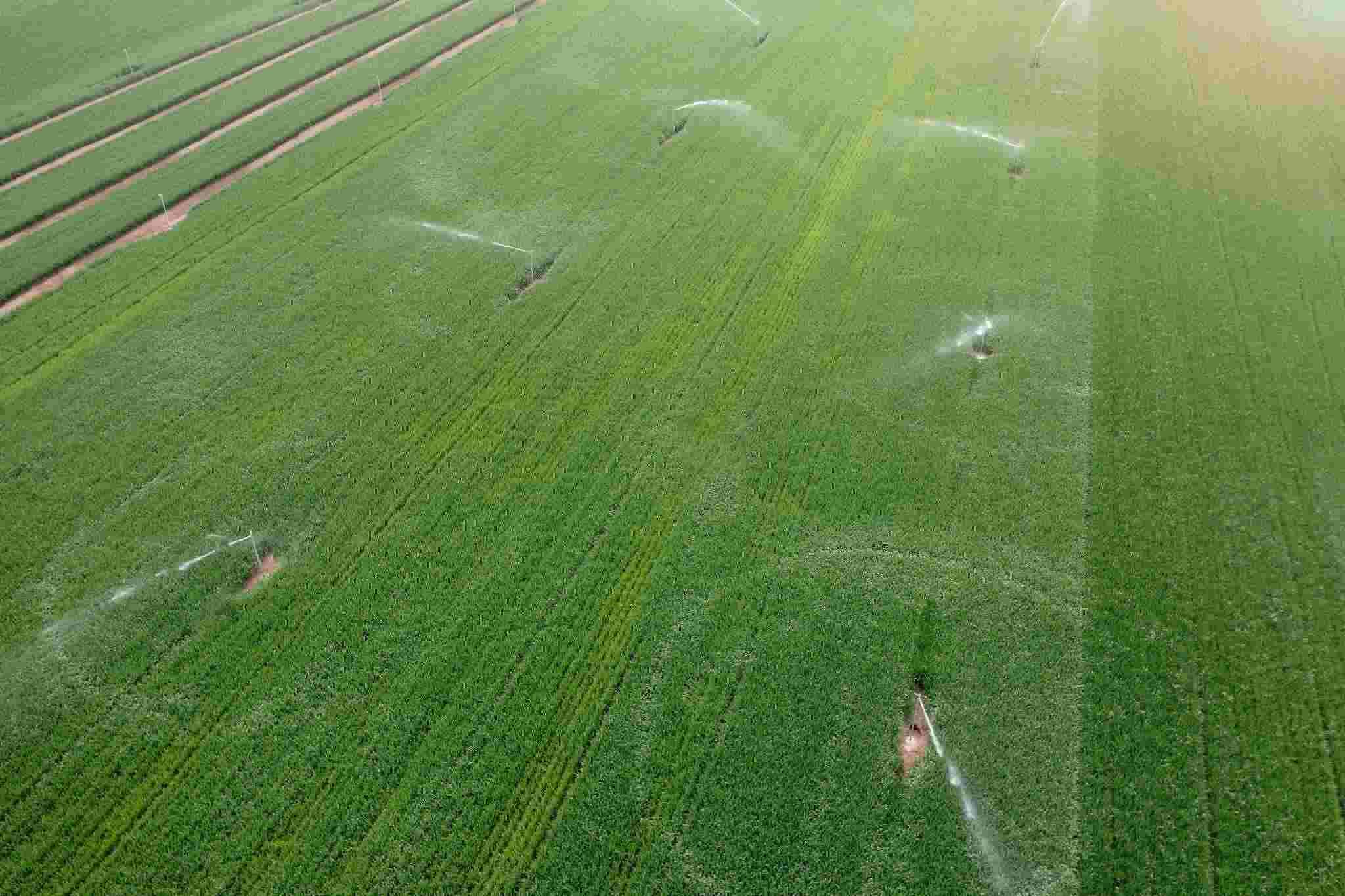 △河南開封尉氏縣現(xiàn)代化自動灌溉農田。