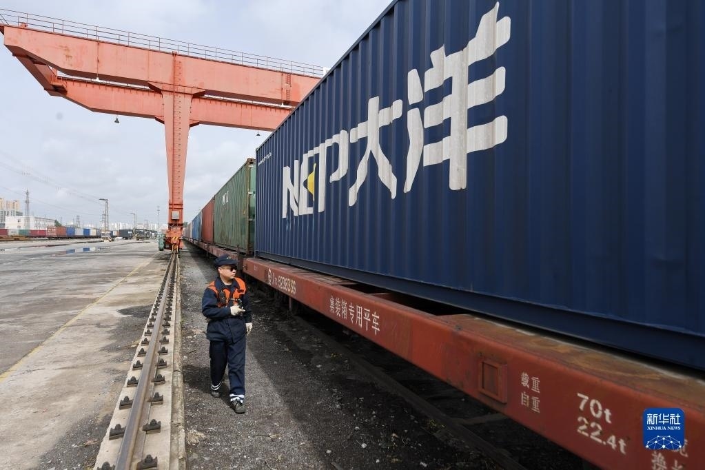當(dāng)日,河北省廊坊市正式開通中歐(中亞)班列(廊坊——塔什干)。首列開行的集裝箱班列編組55輛,由廊坊北鐵路貨場始發(fā),經(jīng)霍爾果斯口岸出境,途經(jīng)哈薩克斯坦,最終抵達(dá)烏茲別克斯坦塔什干,全程約6000公里,預(yù)計運行時間約15天,貨物總重量1400余噸,主要包括保溫管、機(jī)械設(shè)備、型材等。新華社發(fā)(劉向攝)