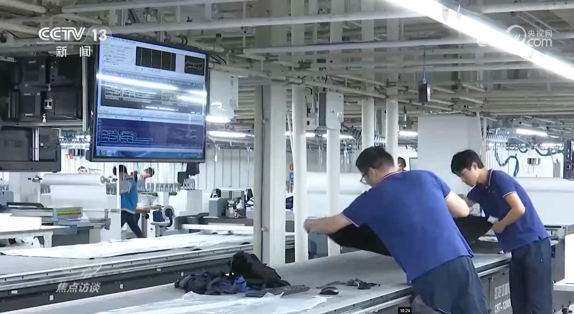 青島酷特智能股份有限公司經(jīng)理劉阿娜:“全球的客戶只要把一些核心的數(shù)據(jù)給到我們,幾秒鐘后會(huì)自動(dòng)生成客戶想要的版型,進(jìn)入生產(chǎn)?!?/p>