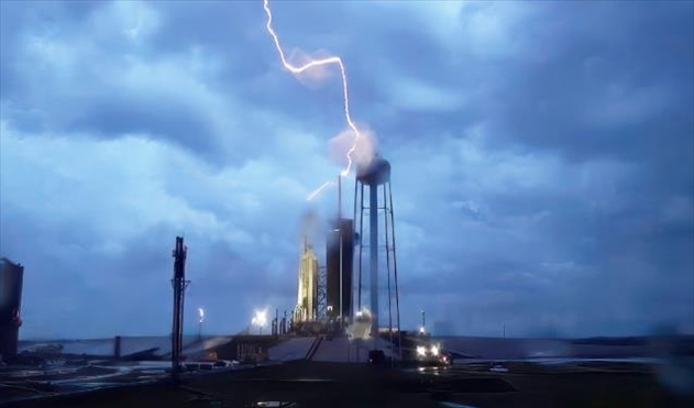 ·美SpaceX火箭發(fā)射推遲:發(fā)射臺(tái)遭多道閃電擊中,畫(huà)面曝光。