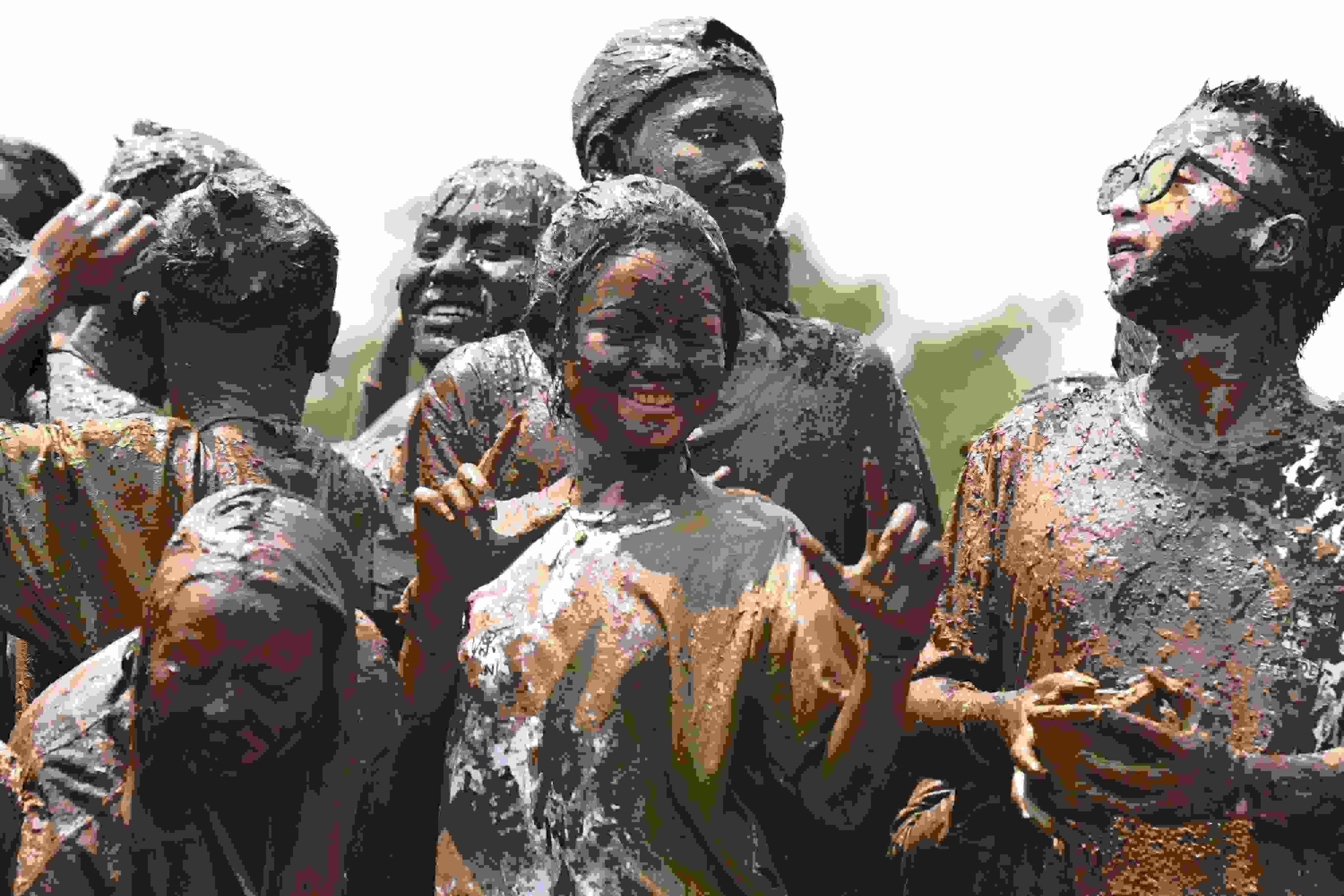 2023年4月30日,云南臨滄,游客相互抹泥表示祝福。當(dāng)日,2023年中國佤族司崗里摸你黑狂歡節(jié)在云南省臨滄市滄源佤族自治縣啟幕。人們用天然原料“娘布洛”配置而成的涂料相互涂抹表示祝福,摸得越黑,代表快樂幸福越長久。 視覺中國