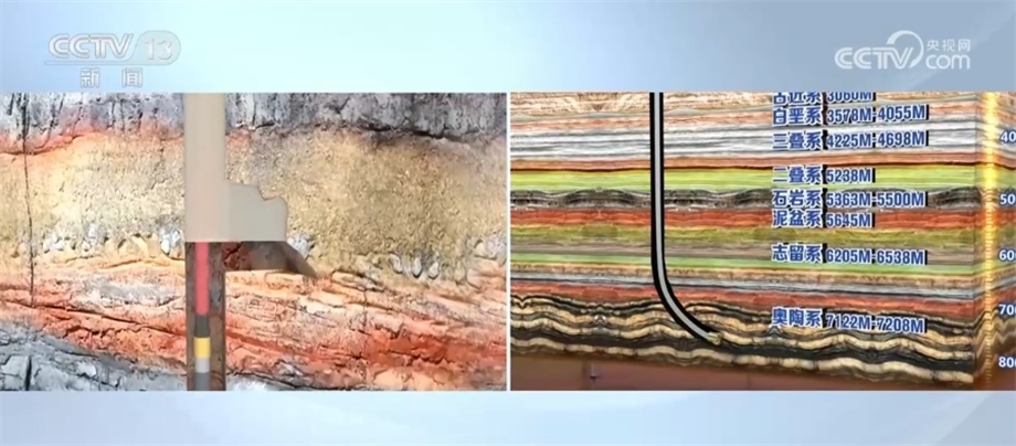 為了讓大家更好地理解鉆井工作,我們借助虛擬技術制作了一個地層結構圖。開鉆施工后,將從新近系開始,陸續(xù)穿越古近系、白堊系、三疊系等,最后到達奧陶系,總共要經過9個地層,最后來到9472米的油層深處。