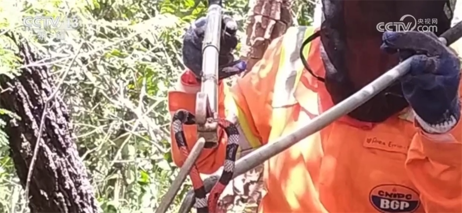 如果在勘探中碰到社區(qū),團(tuán)隊(duì)也會(huì)采取“技術(shù)性偏點(diǎn)”繞過(guò)這些區(qū)域,盡管增加了成本,卻將對(duì)環(huán)境的影響降到最低。項(xiàng)目環(huán)保團(tuán)隊(duì)還配備了6名動(dòng)植物學(xué)家負(fù)責(zé)施工區(qū)域中的動(dòng)植物保護(hù)。今年3月,團(tuán)隊(duì)在勘探中發(fā)現(xiàn)了一條毒性很強(qiáng)的珊瑚蛇,為了保護(hù)作業(yè)人員的安全,他們決定將它轉(zhuǎn)移到項(xiàng)目施工區(qū)以外的地方。