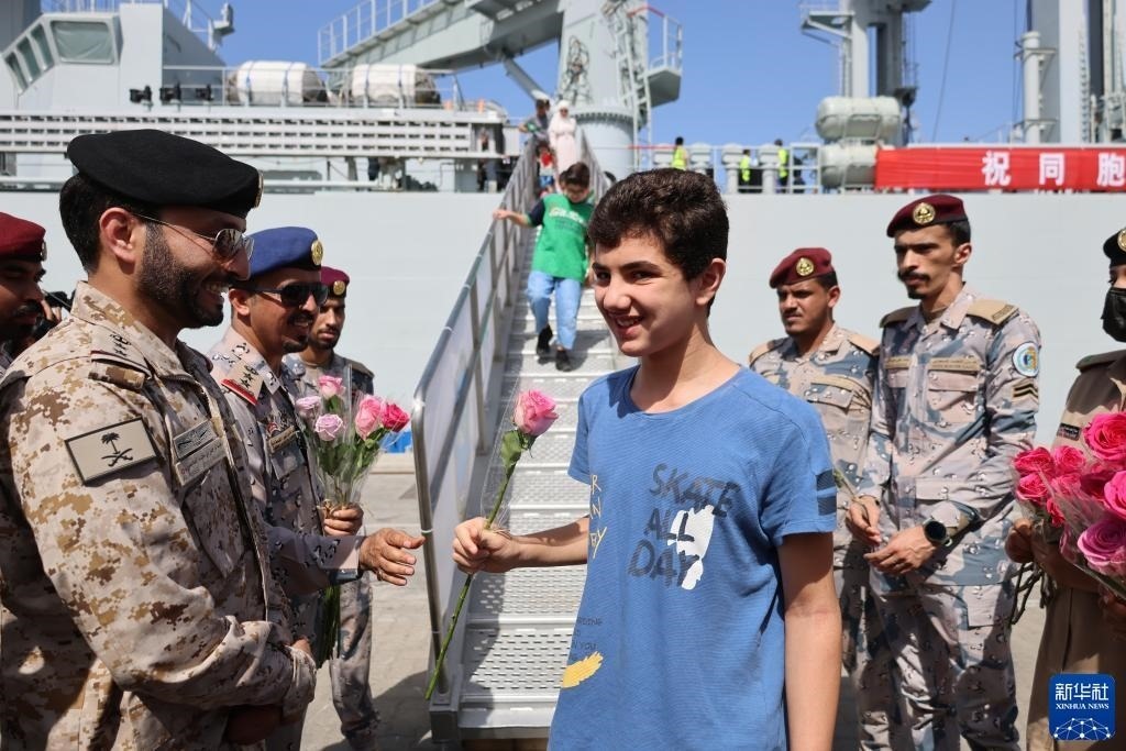 4月27日,從蘇丹撤離人員乘坐中國(guó)海軍軍艦抵達(dá)沙特阿拉伯吉達(dá)港。新華社記者 王海洲 攝