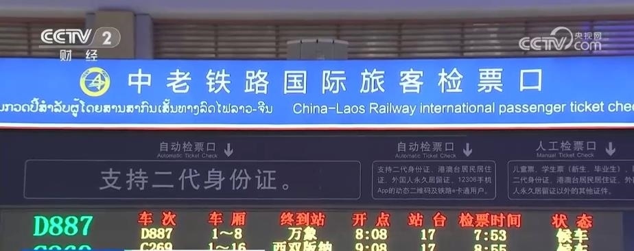 記者 范紫霄:現(xiàn)在是中午12時(shí)30分,這趟列車已經(jīng)到達(dá)了磨憨站,也是這趟列車在我國境內(nèi)的最后一站??缇城巴蠐氲穆每托枰獢y帶全部行李下車辦理通關(guān)等一些相關(guān)手續(xù),然后繼續(xù)返回這列我們乘坐的D887次列車,通過畫面中的友誼隧道,跨越國境,在今天傍晚6時(shí)38分抵達(dá)老撾首都萬象。