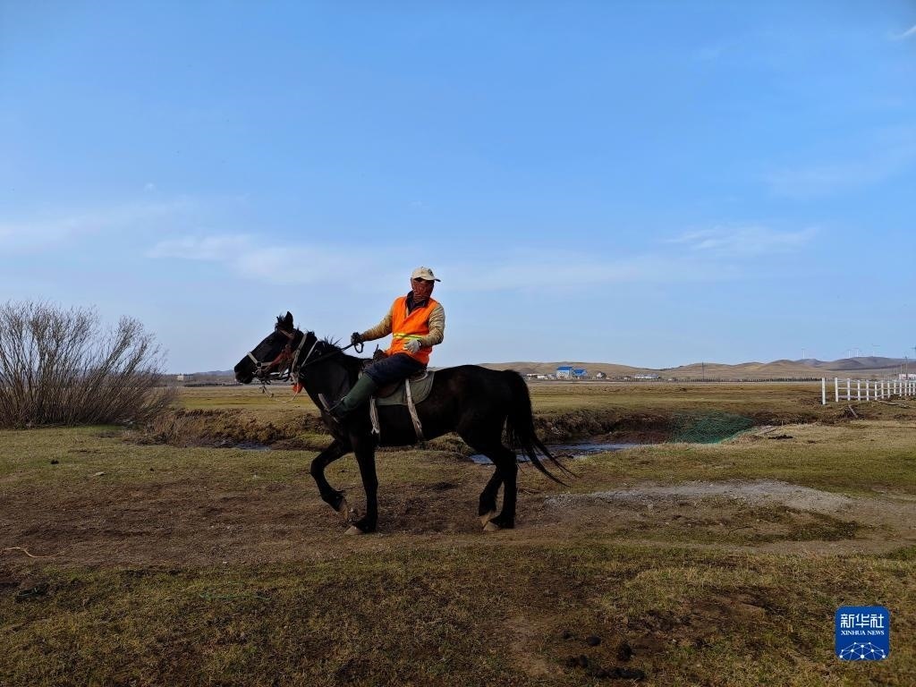 5月2日,河北省承德市豐寧滿族自治縣大灘鎮(zhèn)扎拉營村的護林員在海留圖國家濕地公園巡邏。