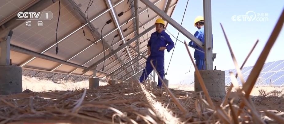 央視網(wǎng)消息:在寧夏中衛(wèi)市騰格里沙漠里,成千上萬塊藍色光伏板整齊排列,隨著太陽的運轉(zhuǎn)逐日追光,每年可以發(fā)電17億度。這里的工作人員被稱為“追日人”?!拔逡弧奔倨?,他們依然堅守在工作崗位上。